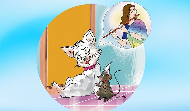 “मावशे, एक मात्र खरं की, मालकीणबाई जेव्हा बासरी वाजवतात तेव्हा किती प्रेमळ नि एखाद्या देवीसमानच भासतात. आपल्या पाठीमागची कटकट कमी होण्यासाठी त्या दिवसरात्र बासरी वाजवत बसू दे, अशी तू कॅटूलेश्वरीस नि मी रॅटूलेश्वरास प्रार्थना करुया कां ग?”