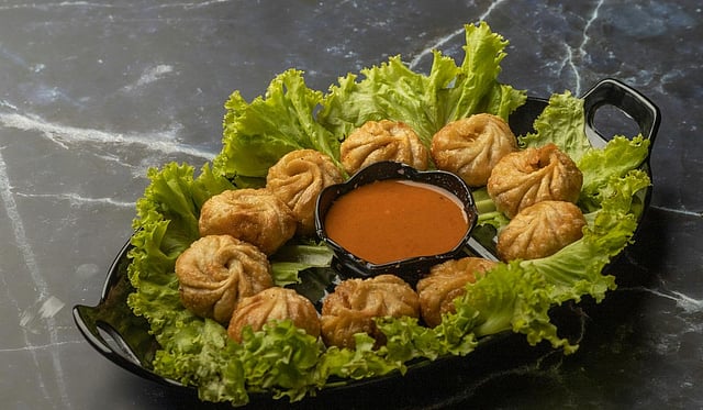 दार्जिलिंगसारख्या भारतातील डोंगराळ प्रदेशात मांस किंवा भाज्यांनी भरलेले मोमो, डंपलिंग.