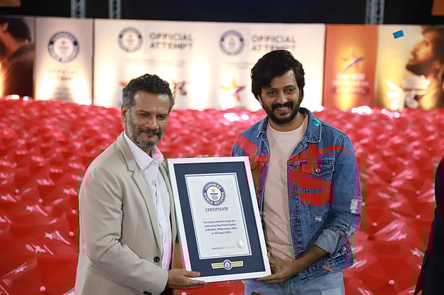 सुपरस्टार रितेश देशमुख यांच्या उपस्थितीत हा अनोखा विक्रम रचण्यात आला. वेड सिनेमाला बॉक्स ऑफिसवर घवघवीत यश मिळालं. सत्या आणि श्रावणीच्या अनोख्या लव्हस्टोरीने संपूर्ण महाराष्ट्राला वेड लावलं. याच प्रेमाची साक्ष देणाऱ्या भव्यदिव्य हृदयाची कलाकृती साकारून जागतिक विक्रम रचण्यात आला. ही भव्यदिव्य कलाकृती साकारण्यासाठी तब्बल १४४६ छत्र्यांचा वापर करण्यात आला. दोन दिवसांच्या अथक परिश्रमानंतर ही कलाकृती आकारास आली. मराठी सिनेमा आणि मराठी वाहिन्यांच्या इतिहासात पहिल्यांदाच हा प्रयोग करण्यात आला आहे. वेड सिनेमात सत्या आणि श्रावणीचं छत्रीसोबत एक वेगळं नातं आहे. त्यामुळेच गिनिज वर्ल्ड रेकॉर्डस साठी सुद्धा छत्रीची निवड करण्यात आली. रितेश देशमुख यांनी या कलाकृतीतील अखेरची छत्री स्वहस्ते ठेऊन गिनिज वर्ल्ड रेकॉर्ड पूर्णत्वास नेला.