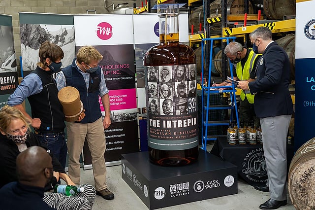मॅकॅलन कंपनीची ‘द इंट्रेपिड’ म्हणून ओळखल्या जाणाऱ्या ३२ वर्षे जुनी आणि ३११ लीटर स्कॉच व्हिस्कीच्या लिलावाकडे तमाम मद्यप्रेमींचे लक्ष लागले असून हा लिलाव एडिनबर्गमधील लिओन आणि टर्नबुल ही संस्था करेल. या ५ फूटांच्या एका बाटलीत ४४४ बाटल्या सहज मावू शकतात.