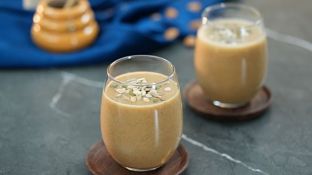 अतिरिक्त पौष्टिकतेसाठी ४ ते ५ बदाम किंवा अक्रोडही ब्लेंड करताना घाला.