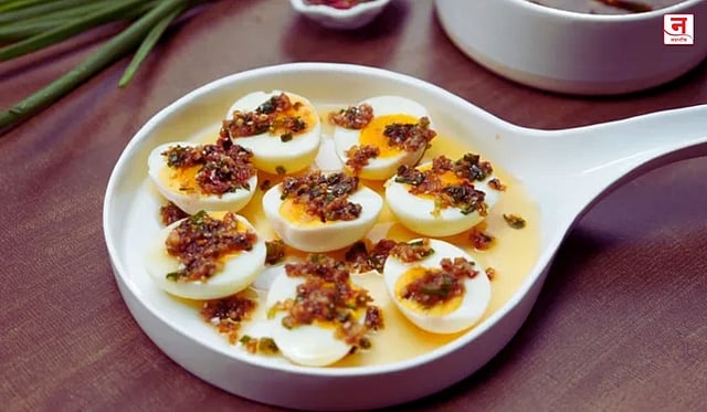 साधे उकडलेले अंडे नेहमीच खाऊन कंटाळा आलाय? मग या रविवारी नाश्त्याला करा काहीतरी हटके ट्राय करा. "चिली ऑइल एग्स" ही रेसिपी साध्या अंड्यांना देते स्पायसी आणि फ्लेवरफुल टेस्ट. सुगंधी मिरचीचे तेल, लसूण-आल्याची चव आणि खास टेक्निकमुळे ही डिश घरच्यांना नक्कीच आवडेल.