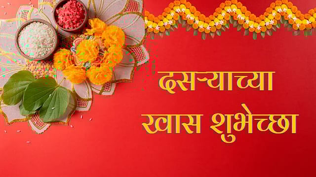 शारदीय नवरात्रौत्सवाच्या शेवटच्या दिवशी दशमी तिथीला दसरा सण साजरा केला होता. दसऱ्याला विजयादशमी असेही म्हणतात. वाईटावर चांगल्याचा विजय झाल्याचे प्रतीक म्हणजे दसरा. या वर्षी दसरा २ ऑक्टोबर रोजी साजरा होणार आहे. यानिमित्त सणाचा उत्साह द्विगुणित करण्यासाठी तुमच्या मित्र, मैत्रीण, नातेवाईक व प्रियजनांना द्या या मराठमोळ्या शुभेच्छा...