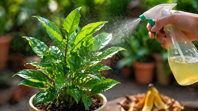 केळीच्या सालींमध्ये पोटॅशियम भरपूर प्रमाणात असतं. सालींचे छोटे तुकडे करून २ ते ३ दिवस पाण्यात भिजत ठेवा. हे पाणी गाळून त्यात थोडं साधं पाणी मिसळा आणि १० ते १५ दिवसांतून एकदा रोपांना द्या. यामुळे रोपांना भरपूर फुलं येतात.