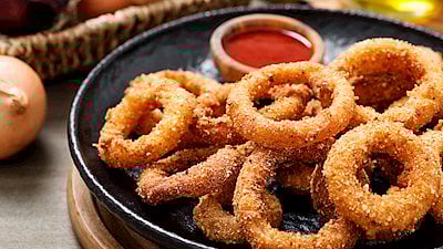 सुरुवातीला मध्यम गोलाकार कांद्याचे तुकडे करा. नंतर एका मोठ्या वाटीत मैदा, कॉर्नफ्लोअर, मीठ, लाल तिखट, काळी मिरी, ओरेगॅनो, चाट मसाला आणि सोडा टाकून थोडं थोडं पाणी घालत घट्टसर पण लवकर लाटता येईल असे पीठ तयार करा. कांद्याचे तुकडे या पीठात दोन्ही बाजूने घोळवून घ्या आणि नंतर ब्रेड चुर्यात लपेटा, जेणेकरून तळल्यानंतर बाहेरील कवच कुरकुरीत होईल. नंतर कढईत तेल गरम करून त्यात कांद्याचे रिंग्स टाकून दोन्ही बाजूने सोनेरी आणि कुरकुरीत होईपर्यंत तळा. तयार कांद्याचे रिंग गरम गरम हिरवी चटणी, टोमॅटो केचप किंवा दहीसोबत सर्व्ह करा.