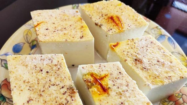खरवस कापताना पूर्ण थंड झालेला असावा, म्हणजे तुकडे नीट पडतात.