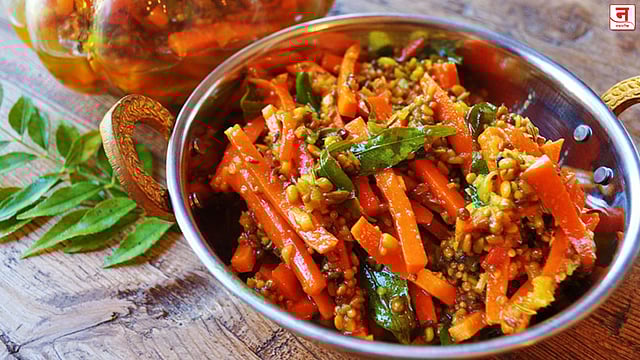 आता कढईत तेल गरम करा. तेल तापल्यानंतर त्यात मोहरी घाला. मोहरी तडतडली की मेथी दाणे आणि थोडीशी हळद घालून फोडणी तयार करा. ही गरम फोडणी भाज्यांच्या मिश्रणावर ओता आणि सगळं नीट एकजीव करा. तयार लोणचं स्वच्छ, कोरड्या काचेच्या बरणीत भरा. दोन-तीन दिवस लोणचं मुरू द्या. मसाले भाज्यांमध्ये छान मुरल्यानंतर हे लोणचं खाण्यास तयार होतं.