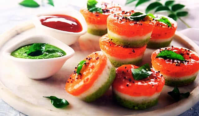 तिरंगी ढोकळा कमी तेलात तयार होतो, हलका असल्याने आरोग्यदायी आहे आणि प्रजासत्ताक दिनाच्या थीमनुसार खास आकर्षण ठरतो.