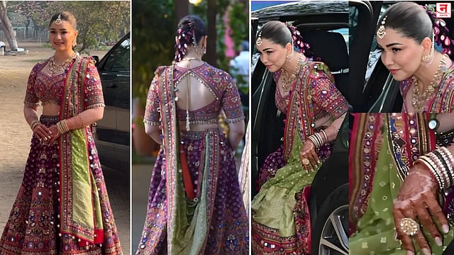 साराने गडद गुलाबी, लाल आणि हिरव्या छटा असलेला मल्टीकलर लेहेंगा परिधान केला होता. अशा प्रकारचा रंगीबेरंगी लेहेंगा मेहेंदी किंवा संगीतसारख्या कार्यक्रमांसाठी उत्तम पर्याय ठरतो. तेजस्वी रंगांमुळे लूक अधिक आकर्षक वाटतो.