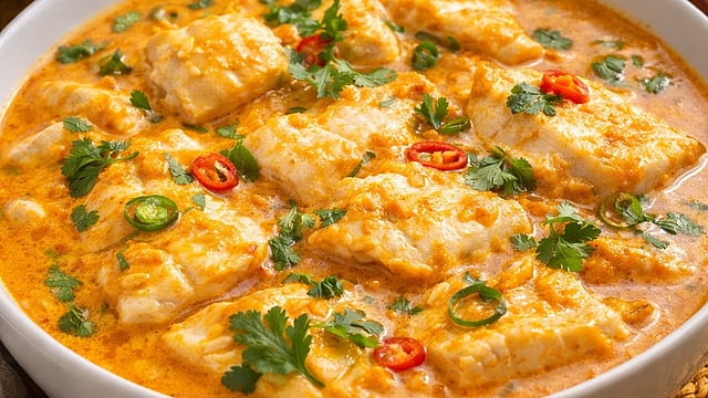थाई फिश करी विथ कोकोनट मिल्क ही चविष्ट, सुगंधी आणि पौष्टिक डिश आहे. नारळाच्या दुधामुळे मिळणारी क्रीमी टेक्स्चर आणि थाई मसाल्यांची खास चव यामुळे ही रेसिपी अगदी वेगळी ठरते. खास प्रसंगी पाहुण्यांसाठी ही डिश उत्तम पर्याय आहे.