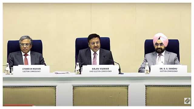 महाराष्ट्र विधानसभेची मुदत येत्या २६ नोव्हेंबरला संपणार आहे. त्यामुळे राज्यातील विधानसभा निवडणुकांचं वेळापत्रक जाहीर केलं जाईल अशी अपेत्रा होती. मात्र, आयोगाने महाराष्ट्र निवडणुकाचं वेळापत्रक जाहीर केले नाही. त्याचे कारणही केंद्रीय निवडणूक आयुक्त राजीव कुमार यांनी पत्रकार परिषदेत सांगितले.