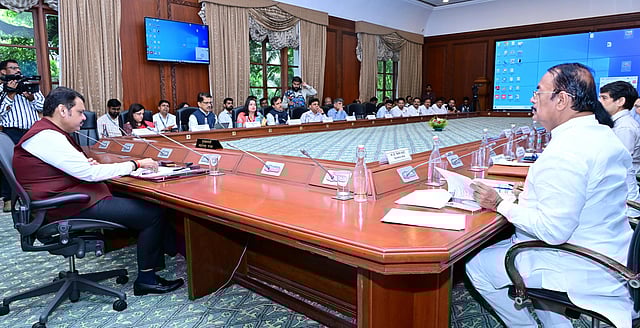 ठाणे जिल्ह्याच्या मुरबाड विधानसभा मतदारसंघातील विविध विकासकामांसंदर्भात मुख्यमंत्री देवेंद्र फडणवीस यांच्या अध्यक्षतेखाली सह्याद्री अतिथीगृहात आढावा बैठक झाली. स्थानिक आमदार किसन कथोरे, नगरविकास विभागाचे अपर मुख्य सचिव असीमकुमार गुप्ता, एमएमआरडीएचे महानगर आयुक्त संजय मुखर्जी, सार्वजनिक बांधकाम विभागाच्या अपर मुख्य सचिव मनिषा म्हैसकर, नगर विकास विभागाचे प्रधान सचिव डॉ. के.गोविंदराज, महावितरणचे अध्यक्ष व व्यवस्थापकीय संचालक लोकेश चंद्र यांच्यासह संबंधित विविध विभागांचे वरिष्ठ अधिकारी यावेळी उपस्थित होते.