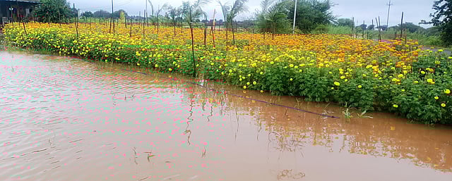 यंदा नाशिक जिल्ह्यात सुमारे ५०० एकरावर झेंडूची रंगबेरंगी फुलशेती फुलवली होती. परंतु, अतिवृष्टीमुळे झेंडू आणि गुलाब फुले नष्ट झाली असून, २० टक्के फुले खराब होण्याच्या मार्गावर आहेत. यामुळे सुमारे ३०० एकरावरील फुलेच हातात येतील, असे उत्पादकांकडून सांगितले जात आहे.