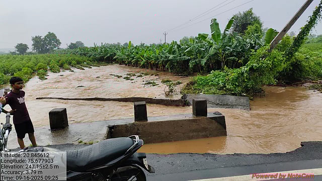 जळगाव जिल्ह्यातील जामनेर, पाचोरा आणि मुक्ताईनगर तालुक्यांमध्ये सोमवारी रात्रीपासून आणि मंगळवारी सकाळी मुसळधार पाऊस झाला. यामुळे नदी-नाले भरून पूर आला, काही गावांचा संपर्क तुटला आणि पिके, घरं तसेच जनावरांचे नुकसान झाले.