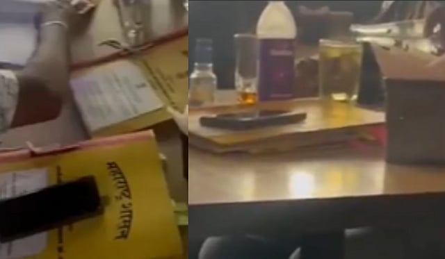 या व्हिडीओमध्ये तीन व्यक्ती बिअर बारमधील टेबलावर महाराष्ट्र शासनाच्या शासकीय फायली ठेवून त्यावर चर्चा करताना दिसत आहेत. विशेष म्हणजे त्यातील एक अधिकारी दारू पीत असतानाच कागदपत्रांवर सह्याही करताना दिसतोय.