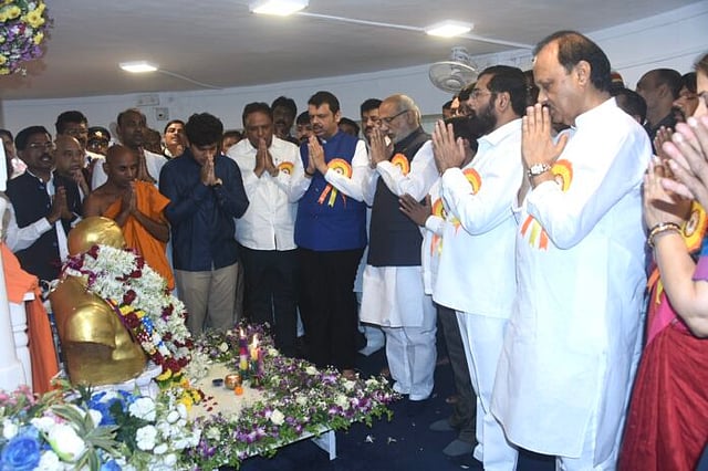 मुंबई : प्रचंड बहुमताने सत्तेत असतानाही, महायुतीमधील नाराजी संपण्याची कोणतीच चिन्हे नाहीत. भारतरत्न डॉ. बाबासाहेब आंबेडकर यांच्या १३४ व्या जयंतीनिमित्त मुंबईत चैत्यभूमीवर सोमवारी आयोजित कार्यक्रमादरम्यान नियोजित भाषण रद्द करण्यात आल्यामुळे एकनाथ शिंदे आणि अजित पवार हे दोघेही नाराज झाल्याची चर्चा आहे. ऐनवेळी कार्यक्रमपत्रिकेत बदल करण्यात आला, पण त्याची कल्पना दोन्ही उपमुख्यमंत्र्यांना न देण्यात आल्यामुळे शिंदे थेट आपल्या निवासस्थानी ठाण्याला निघून गेले, तर अजितदादांनीही काढता पाय घेतला. त्यामुळे केंद्रीय गृहमंत्री अमित शहा यांच्या दौऱ्यानंतर पुढच्याच दिवशी नाराजीनाट्य घडल्यामुळे महायुतीत सर्वकाही आलबेल नसल्याचे समोर येत आहे.