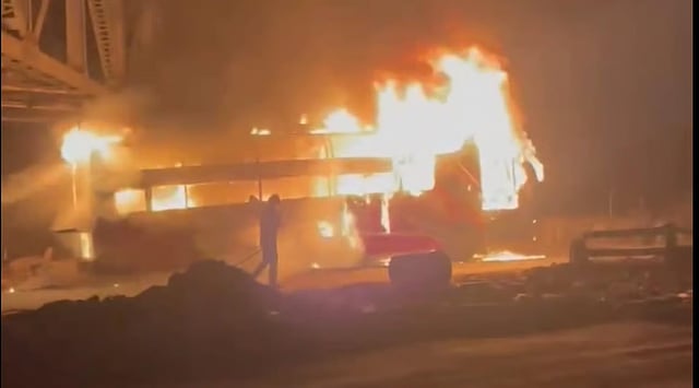 दीपक नायट्रेट कंपनीच्या अग्निशमन दलाच्या जवानांनी घटनास्थळी धाव घेऊन बसला लागलेली आग विझवली.