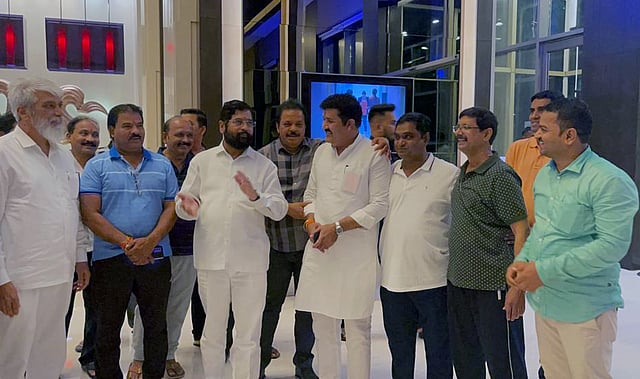 दरम्यान या सर्व पार्श्वभूमीवर शिंदे यांच्या समर्थनार्थ शनिवारी सायंकाळी शिंदे यांच्या ठाणे जिल्ह्यातील लुईसवाडी येथील निवासस्थानाबाहेर मोठ्या संख्येने शिंदे समर्थक निदर्शने करत आहेत. एकनाथ शिंदे यांचे पुत्र आणि खासदार श्रीकांत शिंदे यांनी बंडखोर आमदारांच्या समर्थनार्थ बोलले. यावेळी माजी नगराध्यक्ष नरेश म्हस्के यांनीही जमलेल्या लोकांना संबोधित केले.
