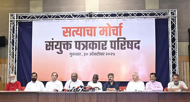 बनावट मतदार यादी आणि मतदार यादीत फेरफार केल्याच्या मुद्द्यावरून महाविकास आघाडीसोबतच मनसे आणि अन्य डावे पक्ष निवडणूक आयोगाविरोधात आक्रमक झाले आहेत. या बोगस मतदारांसदर्भातील मुद्द्यावरून राष्ट्रवादी काँग्रेसचे (शरद पवार गट) नेते शरद पवार, शिवसेना (ठाकरे गट) पक्षप्रमुख उद्धव ठाकरे आणि मनसे प्रमुख राज ठाकरे यांच्या नेतृत्वात शनिवारी, १ नोव्हेंबरला विरोधक मोर्चा काढणार आहेत. या मोर्चाच्या पार्श्वभूमीवर महाविकास आघाडीतील नेते, मनसे नेते आणि डाव्या पक्षातील नेतेमंडळींची यशवंतराव चव्हाण सेंटरमध्ये रणनीती ठरवण्यासाठी महत्त्वपूर्ण बैठक पार पडली. शिवसेनेचे (ठाकरे) पक्षप्रमुख उद्धव ठाकरे, मनसे अध्यक्ष राज ठाकरे यांची यावेळी प्रमुख उपस्थिती होती. या बैठकीनंतर अनिल परब, जितेंद्र आव्हाड, सचिन सावंत यांनी या मोर्चाची माहिती दिली.