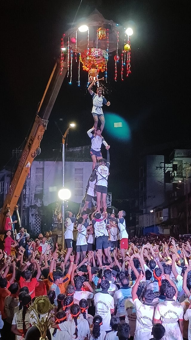शहरात तारपा चौक येथे गेली ५वर्षे पासून क्रेन च्या साहाय्याने मोठी दहीहंडी लावण्यात येते.ही हंडी फोडण्यासाठी शहरातील बजरंग बली गोविंदा पथकाने सलामी दिली,त्यानंतर दर्या सारंग गोविंदा पथक यांनी देखील सलामी दिली, सहा थरांची हंडी फोडण्यात हर हर महादेव या पथकास अखेर 2 ते 3 तासांच्या प्रयत्नानंतर यश आले,सलामी दिलेल्या प्रत्येक पथकास भेट म्हणून एक ट्रॉफी देखील देण्यात आली आहे.