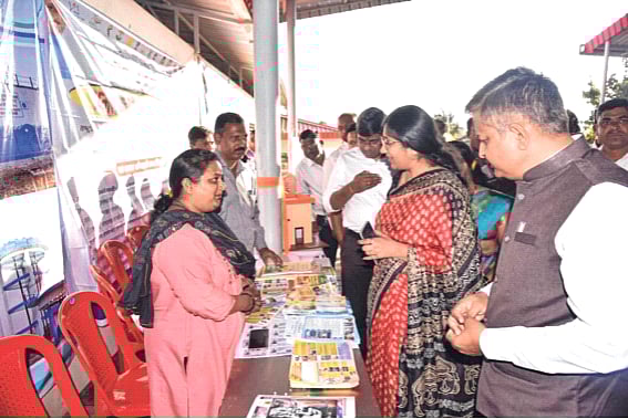 कोल्हापूर : विकसित भारत संकल्प यात्रेचे आयोजन केंद्र शासनाकडून ग्रामीण तसेच शहरी भागात केले जात आहे. शासकीय योजनांचे लाभ न मिळालेल्या लाभार्थ्यांच्या उद्दिष्ट पूर्तीसाठी जिल्हयात विकसित भारत संकल्प यात्रे अंतर्गत गावोगावी योजना देण्यासाठी विविध कार्यक्रमांचे आयोजन केले जात आहे. कोल्हापूर जिल्ह्यासाठी प्रभारी अधिकारी म्हणून केंद्रीय सहसचिव कार्पोरेट व्यवहार मंत्रालय, भारत सरकार अनीता शाह अकेल्ला यांची नियुक्ती झाली आहे, त्यांनी शाहुवाडी तालुक्यातील बांबवडे येथे सुरू असलेल्या संकल्प यात्रेला १५ जानेवारी रोजी भेट दिली. यावेळी त्यांच्या हस्ते प्रसिद्धी रथाचे पूजन करून कार्यक्रमाची सुरुवात झाली. उपस्थितांना २०२४ च्या दिनदर्शिकेचे वाटप करण्यात आले. अनिता शाह यांनी कार्यक्रमस्थळी लावण्यात आलेल्या शासकीय योजनांच्या प्रत्येक स्टॉलला भेट देऊन माहिती जाणून घेतली.