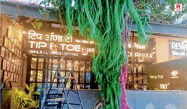 मुंबईत विविध प्राधिकरणाची कामे सुरू असून कामात अडथळा ठरणाऱ्या झाडांचे पुनर्रोपण करण्यात येते. मात्र, पाली हिल येथील ‘टिप अँड टो लक्स’ या सलूनने वडाच्या खोडावर व लोंबकळणाऱ्या फांद्यांवर गुलाबी व हिरव्या रंगाचे रासायनिक स्प्रे पेंट केल्याचे उघडकीला आले आहे.