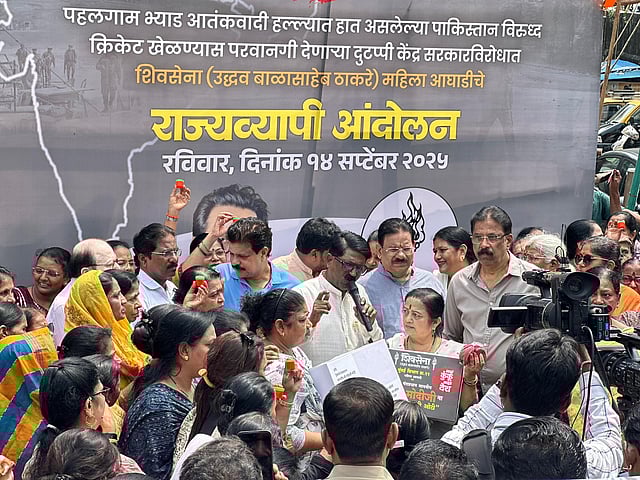 दुबईत आज (दि. १४) होणाऱ्या आशिया कप २०२५ मधील भारत-पाकिस्तान सामन्याविरोधात शिवसेना उद्धव बाळासाहेब ठाकरे गटाने आंदोलन छेडले. पक्षाच्या महिला आघाडीने मुंबईत या क्रिकेट सामन्याचा निषेध केला. या आंदोलनाला 'माझं कुंकू, माझा देश' असे नाव देण्यात आले आहे.