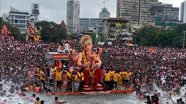 गिरगाव चौपाटी : 'पुढच्या वर्षा लवकर या' म्हणत दुसऱ्या दिवशी पहाटे अरबी समुद्रात बाप्पाला शेवटचा निरोप दिला जातो.