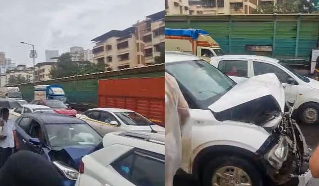मिळालेल्या माहितीनुसार, मुंबईवरून ठाण्याकडे जाणाऱ्या मार्गावर सकाळच्या सुमारास हा अपघात घडला. पुढे असलेल्या एका कारने अचानक ब्रेक मारल्याने मागून येणाऱ्या भरधाव गाड्यांची एकमेकांना जबर धडक झाली.