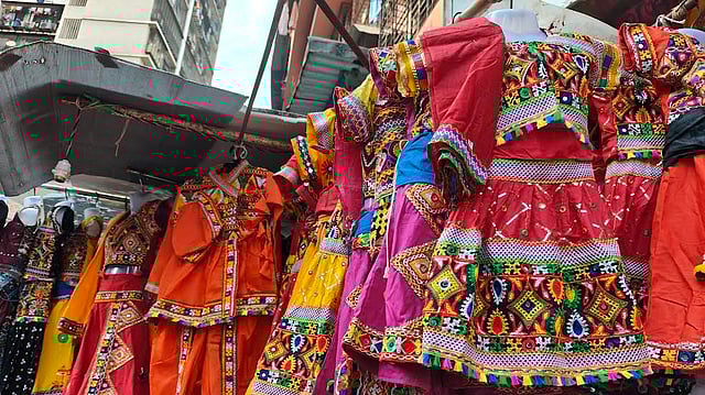 सध्या सर्वांना नवरात्रौत्सवाचे वेध लागले असून भुलेश्वर बाजारात दांडियासाठी पारंपरिक कपड्यांची खरेदी करण्यास मोठी गर्दी उसळली आहे. परंपरागत कुर्ता, चनिया चोली, लहेंगा-चोली यासारख्या पोशाखांना ग्राहक विशेष पसंती देत आहेत. देशभरात नवरात्रौत्सव साजरा केला जात असला तरी मुंबईतील गरब्याची धूम काही वेगळीच असते.
