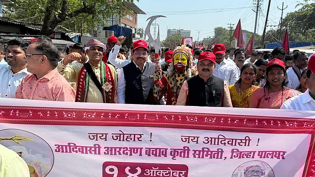 पालघर/वाडा : पालघर जिल्हाधिकारी कार्यालयावर मंगळवारी समाजाचा प्रचंड मोर्चा काढण्यात आला. धनगर आणि बंजारा समाजांच्या अनुसूचित जमातींमध्ये घुसखोरीच्या प्रयत्नांविरोधात उभा केलेला हा मोर्चा बिरसा मुंडा चौकातून जिल्हाधिकारी कार्यालयापर्यंत पायी चालत पोहोचला. अंदाजे १५ हजार आदिवासी या मोर्चात सहभागी झाले होते. मोर्चाचे नेतृत्व आमदार विलास तरे आणि आमदार राजेंद्र गावित यांनी केले. मोर्चाच्या शेवटी जिल्हाधिकारी डॉ. इंदू राणी जाखड यांना मागण्यांचे निवेदन देण्यात आले.