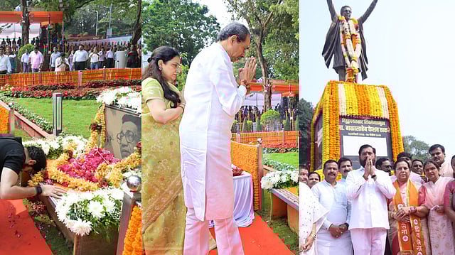 मुंबई : महाराष्ट्राचे लाडके नेते आणि लाखो शिवसैनिकांचे दैवत हिंदूहृदयसम्राट शिवसेना प्रमुख स्वर्गीय बाळासाहेब ठाकरे यांची रविवार १७ नोव्हेंबर रोजी पुण्यतिथी. या दिवशी महाराष्ट्रासह देशभरातील बाळासाहेबांचे प्रेमी आणि शिवसैनिकांनी दादर शिवाजी पार्क मैदानातील स्मृतीस्थळाला भेट दिली. शिवसेना पक्षप्रमुख उद्धव ठाकरे, त्यांच्या पत्नी रश्मी ठाकरे, आदित्य ठाकरे, सुभाष देसाई आदींनी स्मृती स्थळावर बाळासाहेबांना वंदन केले. दरम्यान, मुख्यमंत्री एकनाथ शिंदे यांनीही बाळासाहेब ठाकरे यांच्या कुलाबा येथील पुर्णाकृती पुतळ्याला भेट देऊन आदरांजली वाहिली.