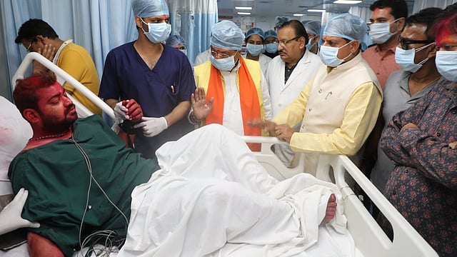 उज्जैन : उज्जैनच्या जगप्रसिद्ध महाकाळेश्वर मंदिरात सोमवारी भस्म आरतीच्या वेळी अघटित घटना घडली. मंदिराच्या गर्भगृहात लागलेल्या आगीत पुजाऱ्यासह १४ जण भाजले असून त्यांना रुग्णालयात दाखल करण्यात आले आहे. दरम्यान, मध्य प्रदेशचे मुख्यमंत्री मोहन यादव यांनी जखमींची भेट घेऊन त्यांना १ लाख रुपयांची मदत व मोफत उपचारांची घोषणा केली. महाकाळ मंदिरात रोज सकाळी भस्म आरती होत असते. सोमवारी सकाळी ५.५० वाजता आरती सुरू होती. पूजेच्या थाळीत कापूर जाळला जात होता.