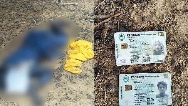 जेलसमेर : राजस्थानमधील जैसलमेरमधील सादेवाला भागात भारत-पाकिस्तान सीमेजवळ एका मुलाचा आणि मुलीचा मृतदेह सापडला आहे. हे मृतदेह सुमारे ६-७ दिवसापूर्वीचे आहेत. मृतदेहांजवळ पाकिस्तानी सिम कार्ड आणि ओळखपत्रे सापडली आहेत त्यामुळे हे दोघेही पाकिस्तानी असल्याचे समोर आले आहे.