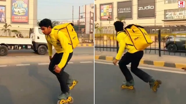 १० मिनिटांत डिलिव्हरी करणारच! चक्क रोलर स्केट्सवरून निघाला तरुण; VIDEO व्हायरल