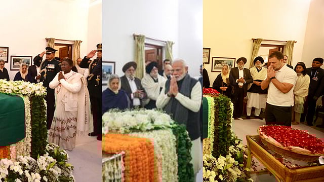 तिरंग्यात गुंडाळलेले सिंग यांचे पार्थिव शुक्रवारी ३, मोतीलाल नेहरू रोड येथील त्यांच्या निवासस्थानी आणण्यात आले. काँग्रेसच्या माजी अध्यक्षा सोनिया गांधी, पक्षाचे अध्यक्ष मल्लिकार्जुन खर्गे, राहुल गांधी यांच्यासह विविध पक्षांच्या नेत्यांनी डॉ. सिंग यांच्या पार्थिवाचे दर्शन घेऊन श्रद्धांजली अर्पण केली.