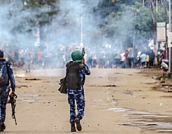 राज्यातील काही जिल्ह्यांमध्ये लागू करण्यात आलेल्या ‘अफ्स्पा’ कायद्याच्या निषेधार्थ विविध नागरी संघटनांनी मंगळवारी इम्फाळ पश्चिम जिल्ह्यात संचारबंदी झुगारून मोर्चा काढला होता. मात्र, हा मोर्चा केइसंपतजवळ पोलिसांनी अडविला.