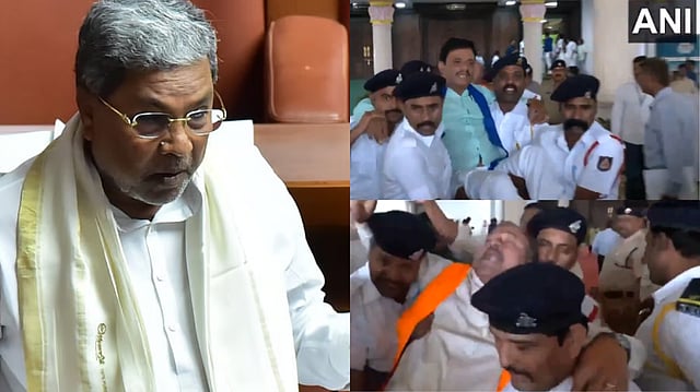 बंगळुरू : ‘हनी ट्रॅप’ प्रकरणावरून कर्नाटक विधानसभेत शुक्रवारी रणकंदन माजले. भाजपचे आमदार सभागृहातील मोकळ्या जागेत शिरले आणि त्यांनी अध्यक्षांच्या खुर्चीसमोर कागदपत्रे फाडून भिरकावली. या गोंधळामुळे विधानसभेचे कामकाज तहकूब करण्यात आले. दरम्यान, या गोंधळातच राज्य सरकारने सरकारी कंत्राटांमध्ये मुस्लिमांना ४ टक्के आरक्षण देणारे विधेयक मंजूर केले. भाजपने हा निर्णय असंवैधानिक असल्याचे सांगत त्याला कायदेशीररीत्या आव्हान देणार असल्याचे म्हटले आहे.