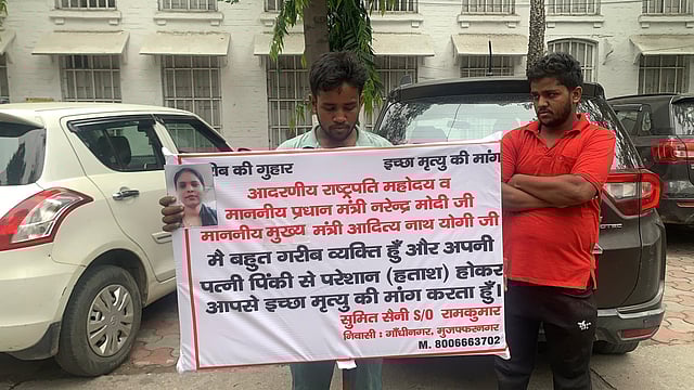 या युवकाचे नाव सुमित सैनी आहे. त्याच्या पत्नीचे नाव पिंकी आहे. तो मुजफ्फरनगरमध्ये गांधीनगर येथे राहतो. त्याने पत्नीच्या अत्याचाराला कंटाळून राष्ट्रपती द्रौपदी मुर्मू, पंतप्रधान नरेंद्र मोदी आणि मुख्यमंत्री योगी आदित्यनाथ यांना पत्र पाठवून इच्छामरणाची मागणी केली आहे. तर, बॅनर घेऊन तो जिल्हाधिकारी कार्यालयात पोहचला. या बॅनरवर त्याने 'मी गरीब असून माझ्या पत्नीच्या त्रासाला कंटाळून इच्छामरणाची मागणी करत आहे' असे लिहिले आहे.