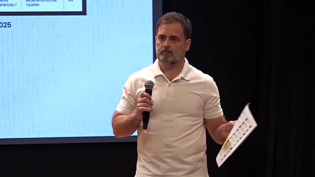 राहुल गांधी यांनी गुरुवारी मतदार यादी पडताळणीतील अनियमिततेवर सादरीकरण केले. महाराष्ट्र आणि कर्नाटकची मतदार यादी पडद्यावर दाखविताना दोन्ही राज्यांच्या मतदार यादीत संशयास्पद मतदार आहेत, असे ते म्हणाले. महाराष्ट्राचे निकाल पाहिल्यानंतर निवडणूक चोरी झाली आहे याची खात्री पटली. आयोगाने मशीन रिडेबल मतदार यादी न दिल्याने, आम्हाला खात्री पटली आहे की निवडणूक आयोगाने भाजपशी संगनमत करून महाराष्ट्राची निवडणूक चोरली आहे. त्याचप्रमाणे कर्नाटकात वेगवेगळ्या बुथच्या मतदार यादीत एकाच व्यक्तीचे नाव आहे. यादीत अनेक ठिकाणी लोकांचे फोटो नाहीत. त्याच वेळी, अनेक ठिकाणी बनावट पत्ते लिहिले गेले आहेत, असेही ते म्हणाले.
