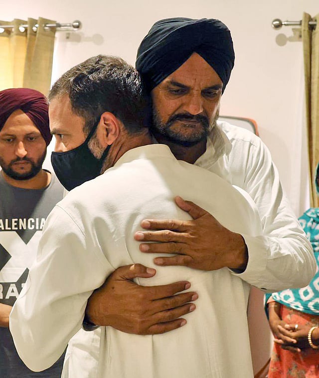 पंजाबी गायक सिद्धू मुसेवाला (Sidhu Musawala) यांच्या हत्येनंतर काँग्रेस नेते राहुल गांधी मंगळवारी त्यांच्या मूळ गावी मुसा येथे पोहोचले. यादरम्यान राहुल गांधी यांनी दिवंगत सिद्धू मुसेवाला यांच्या पालकांची भेट घेतली. तसेच सिद्धू मुसेवाला यांना पुष्पहार अर्पण करून आदरांजली वाहिली. सिद्धू मुसेवाला हे गायक तसेच काँग्रेस पक्षाचे सदस्य होते. पंजाबमधील यंदाची विधानसभा निवडणूकही त्यांनी काँग्रेसच्या तिकिटावर लढवली होती. 29 मे रोजी सिद्धू मुसेवाला यांची गोळ्या झाडून हत्या करण्यात आली. हत्येच्या एक दिवस आधी सिद्धू मुसेवालासह पंजाब पोलिसांनी ४२४ व्हीआयपींची सुरक्षा काढून घेतली होती.