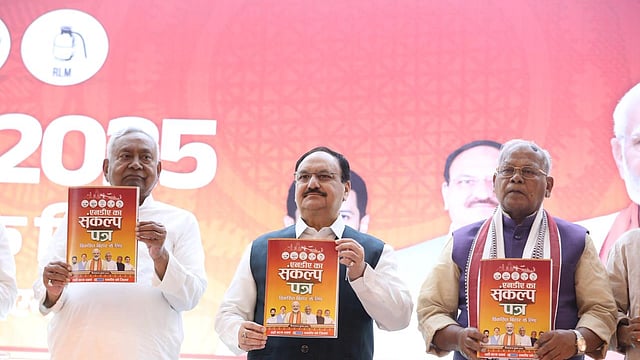राष्ट्रीय लोकशाही आघाडीने शुक्रवारी बिहार विधानसभा निवडणुकीसाठी आपला जाहीरनामा प्रसिद्ध केला. हा जाहीरनामा बिहारचे मुख्यमंत्री नितीश कुमार, उपमुख्यमंत्री सम्राट चौधरी, भाजप अध्यक्ष जे. पी. नड्डा, केंद्रीय मंत्री धर्मेंद्र प्रधान, जीतनराम मांझी, चिराग पासवान आणि इतर आघाडीतील नेत्यांच्या उपस्थितीत प्रसिद्ध करण्यात आला.