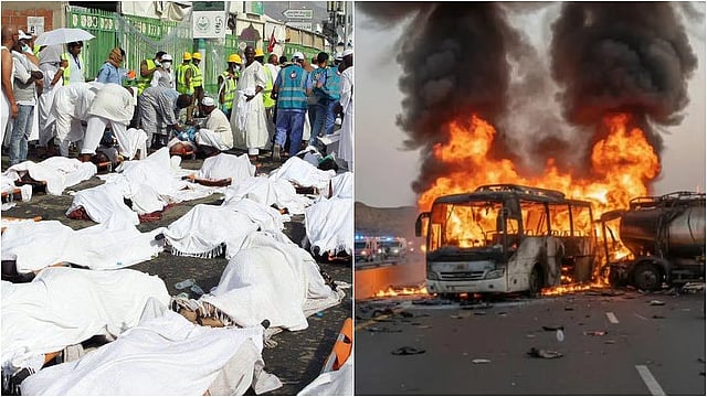 सौदी अरेबियात भारतीय प्रवाशांना घेऊन मक्काहून मदिनाला जाणारी एक बस आणि डिझेल टँकर यांची धडक होऊन झालेल्या अपघातामध्ये बसमधील ४५ भारतीय हज यात्रेकरूंचा होरपळून मृत्यू झाल्याची भीषण घटना घडली. अपघातग्रस्त बसमधील बहुतेक प्रवासी तेलंगणातील हैदराबादचे रहिवासी आहेत.