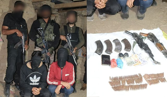 अटक करण्यात आलेल्या या दहशतवाद्यांकडून मोठ्या प्रमाणात हत्यारे आणि दारुगोळा जप्त करण्यात आला आहे. दोघांकडे दोन एके-५६, ४ मॅगजिन, १०२ राऊंड गोळ्या, २ हँड ग्रेनेड आणि २ पाऊच इतका मोठा साठा सापडला. अधिकाऱ्यांनी सांगितले की, सुरक्षा दलाच्या सतर्कतेमुळे आणि योग्य कारवाईमुळे चकमक टळली आणि दोन्ही हायब्रिड दहशतवाद्यांना जिवंत ताब्यात घेता आले. पोलिसांनी या दोन्ही दहशतवाद्यांविरोधात एफआयआर दाखल केला असून, पुढील तपास सुरू केला आहे.