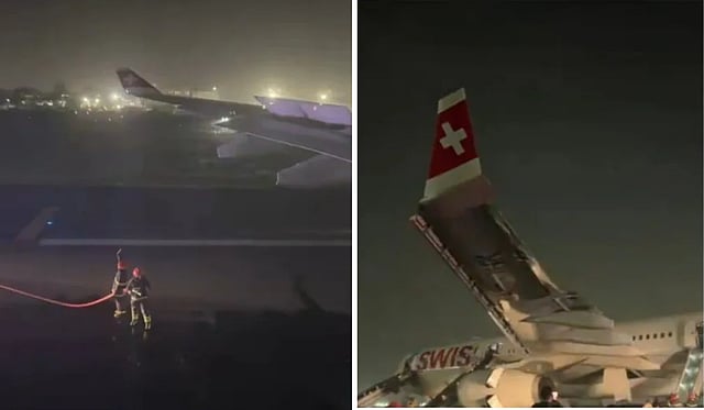 स्विस विमानाच्या इंजिनमध्ये आग; सहा प्रवासी जखमी (Photo-X)