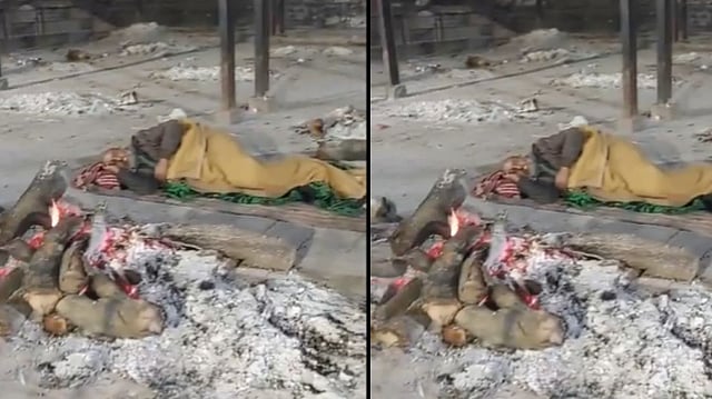 हा व्हिडिओ उत्तर प्रदेशच्या कानपूरमधील कोहना भागात असलेल्या भैरवघाटचा असल्याचे सांगितले जात आहे. यात एक वृद्ध स्मशानात जळत असलेल्या चितेच्या बाजूला झोपलेला दिसत आहे. हा व्हिडिओ 29 डिसेंबरच्या रात्रीचा असल्याची माहिती आहे. सचिन गुप्ता नावाच्या 'एक्स'हँडलवरुन हा व्हिडिओ शेअर करण्यात आला आहे.
