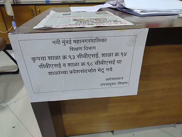 विशेष म्हणजे, या तक्रारींचे निवारण किंवा मार्गदर्शन करण्यासाठी पालकांनी शिक्षण उपायुक्तांना भेटण्याचा प्रयत्न केला असता, त्यांच्या दालनाबाहेर शाळा क्रमांक ९३ सीबीएसई, ९४ सीबीएसई आणि ९८ सीबीएसई या शाळांच्या प्रवेश संदर्भात भेटू नये,असा फलक लावण्यात आला आहे. या फलकामुळे पालक संभ्रमात असून आता आपली दाद नेमकी कुणाकडे मागायची असा प्रश्न उपस्थित झाला आहे.