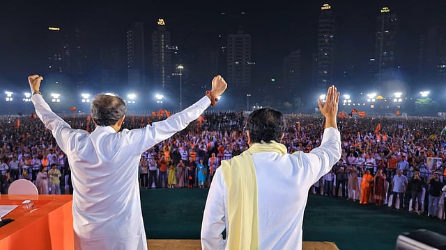 उद्धव ठाकरे म्हणाले की, सत्ताधारी श्रेयवाद करतात. कोस्टल रोड, मेट्रोसारखे प्रकल्प शिवसेनेच्या काळात सुरू झाले, तरी त्याचे श्रेय घेतले जाते. राज ठाकरे यांनी मिश्कीलपणे म्हटले की, २० वर्षांनंतर शिवसेना भवनात येणे जेलमधून सुटल्यासारखे वाटते. दोघांनी मराठी महापौराचा मुद्दा पुन्हा उपस्थित करत मुंबईची अस्मिता जपण्याचा निर्धार व्यक्त केला.