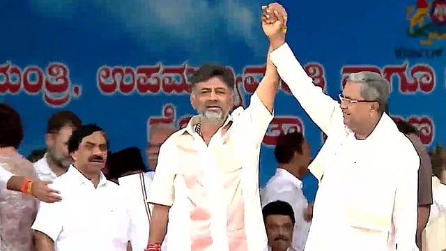 कर्नाटक विधानसभा निवडणुकीचा निकाल लागल्यानंतर भारतीय जनता पक्षाला चितपट करत काँग्रेसने स्पष्ट बहुमताकडे मजल मारली. मात्र, यानंतर कर्नाटक काँग्रेसच्या विजयाचे शिल्पकार मानल्या जाणाऱ्या सिद्धरामय्या आणि डीके शिवकुमार या दोन्ही नेत्यामध्ये मुख्यमंत्री पदावरुन रस्सीखेज पाहायला मिळाली होती. अखेर काँग्रेस नेतृत्वाला डीके शिवकुमार यांची समजूत घालण्यात यश मिळाले. यानंतर शनिवार (20 मे) रोजी कर्नाटकमधील बंगळूर येथील कांतीराव मैदानात काँग्रेसचे नेते सिद्दरामय्या यांनी मुख्यमंत्री पदाची तर डीके शिवकुमार यांनी उपमुख्यमंत्री पदाची शपथ घेतली. यांच्यासोबत काँग्रेसच्या आठ आमदारांना देखील शपथ देण्यात आली. सिद्धरामय्या यांनी दुसऱ्यांदा कर्नाटकचे मुख्यमंत्री म्हणून शपथ घेतली आहे.