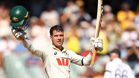 ऑस्ट्रेलिया (पहिला डाव) : ८३ षटकांत ८ बाद ३२६ (कॅरी १०६, उस्मान ख्वाजा ८२; विल जॅक्स २/१०५)